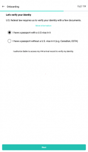 We require that all users have a valid passport and US Visa/I94 record of entry into the US for us to open your account.
