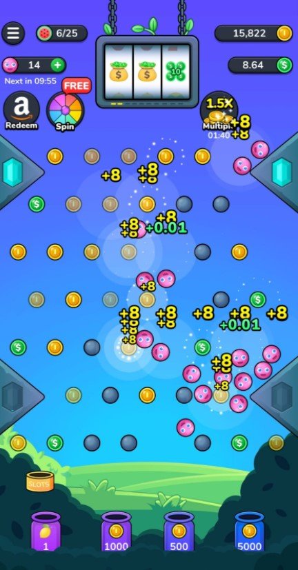 The operation is simple. It consists of touching the screen and the balls will begin to fall from the top of the screen. You will see obstacles, tokens, and coins. When a ball hits a chip or coin, you will receive a reward.